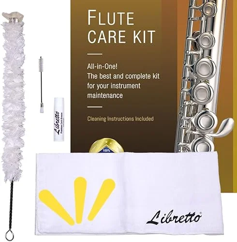 Libretto Flute All-Inclusive Cleaning & Care Kit: Cleaning Swab + Dust Brush + Cleaning Cloth + Pad Dryers + Premium Cork Grease for Piccolo, Great Maintenance Kit to Extend Life of Your Flute!