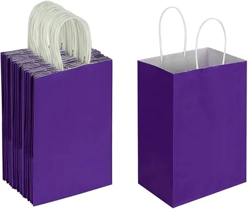 Oikss 50 Pack 5.25×3.25×8.25 Inch Small Purple Kraft Paper Bags with Handles Bulk for Birthday Wedding Party Favors Grocery Retail Shopping Business Goody Craft Gift Bags Cub Sacks, 50 Count