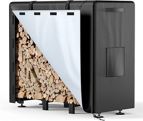 Brightown Firewood Rack Outdoor with Cover, 4FT Indoor Wood Rack for Firewood, Waterproof Fire Wood Holder Outside, Adjustable Heavy Duty Logs Stand Stacker Holder for Fireplace Patio Deck, Black