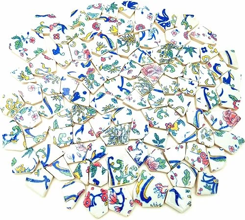 1.1 LB Porcelain Ceramic Mosaic Tiles,Broken Irregular Mosaic Tiles for DIY Craft Floor,Kitchen,Pool, Flower Pots Mosaic Making Supplies (Porcelain 09)