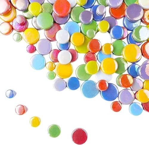 1.1lb Random Round Iridescent Glass Mosaic Tiles, Making Creative Iridescent Glass Mosaic Pieces for DIY Craft,Flowerpots, Vases, Cups, Garden Decor Mosaic Making Supplies… (Mix Color)