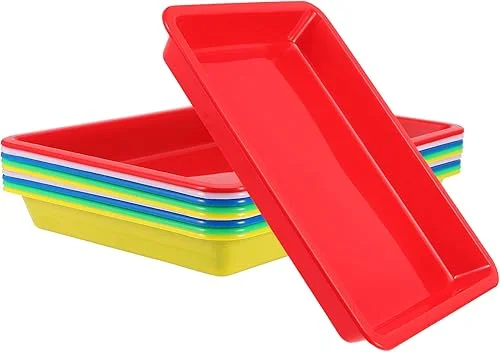 10 Pack Plastic Art Trays, Multicolor Activity Plastic Trays, Stackable Plastic Tray Art and Crafts Organizer Tray for Beads, Painting, DIY Projects, 10.6 x 8.2 x 1.2 Inch