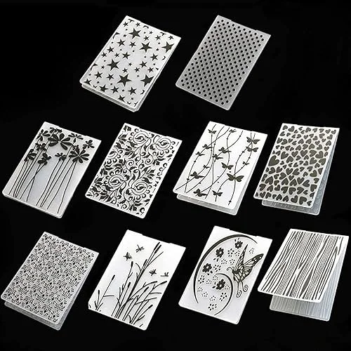 10 Styles Plastic Embossing Folder DIY Craft Template Molds Stamp Stencils Scrapbook Paper Cards Photo Album Making Tool Embossing Folders Handmade Art Craft Supplies Fondant Cake Decorating Mold