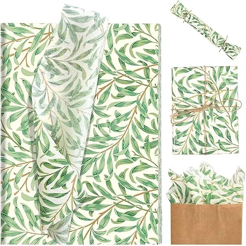 100 Sheets 20 * 14 Inches Sage Green Leaves Tissue Paper for Gift Bags Eucalyptus Leaves Tissue Paper for Gift Wrapping Botanical Decorative Tissue for Wedding Baby Shower Birthday Party DIY Craft