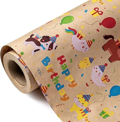 WRAPAHOLIC Animal Kids Wrapping Paper Roll – Mini Roll – 17 Inch x 33 Feet – Baby Animal Birthday Design, Perfect for Party, Holiday