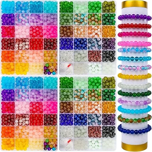 XSEINO 2400 PCS 8mm Glass Beads Bracelet Making Kit, 47 Colors Crystal Beads for Jewelry Making and DIY Crafts,4 Box Round Beads Suitable for Beginners