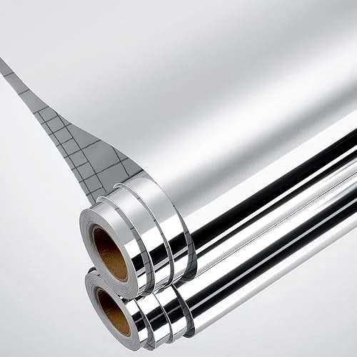 Yenhome Silver Mirror Sticker Roll, 17.7’X118′, Peel and Stick, Reflective, Waterproof, Removable, Flexible, Perfect for Walls, Cabinets, Countertops