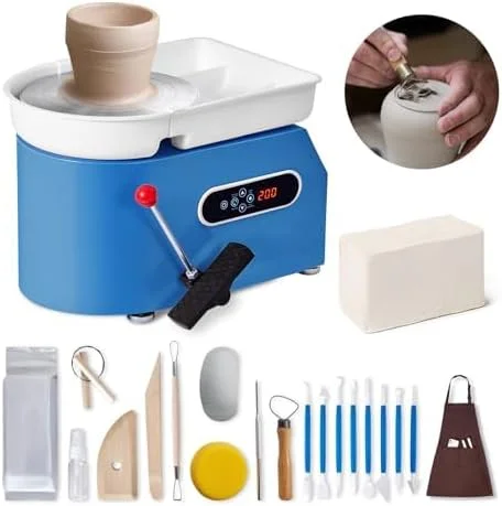 YESMRO Pottery Wheel, 11in 350W Ceramic Wheel Forming Machine, Adjustable 0-300RPM Speed Handle and Foot Pedal Control, ABS Detachable Basin Sculpting Tool Apron Accessory Kit for Work Art Craft DIY