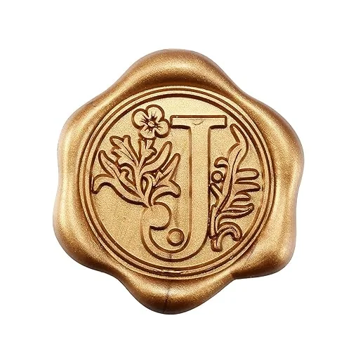 Yoption 50Pcs Initial Alphabet J Adhesive Wax Seal Stickers, Antique Gold Letter Wax Seal Stickers Envelope Seals Self Adhesive Wax Stickers for Wedding Party Birthday Christmas (J)