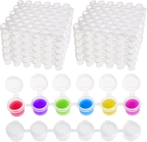 ZEAYEA 100 Strips 600 Pots Paint Pots Strips, 2ml/ 0.07 oz Empty Paint Cup Pots with Lids, Arts Crafts Plastic Storage Containers for Classrooms Schools Paintings Art Summer Camps