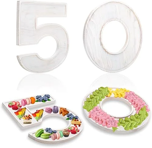 2pcs Wooden Number 50 Charcuterie Board Box, Reusable Number Food Serving Trays for Snack Fruit Charcuterie Candy Cake, Fillable Number Shaped Decorative Platter for Birthday Anniversary Wedding Party
