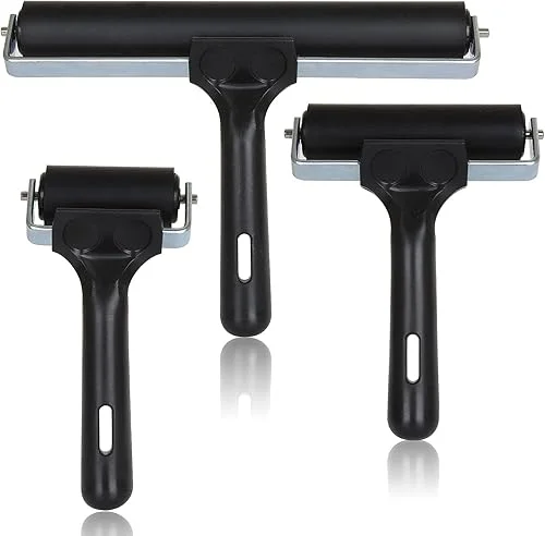 3 PCS Rubber Brayer Rollers, Vinyl Rubber Roller, Ink Painting Brayer, Glue Roller Tool for Printmaking, Ink Paint Block Stamping Brayers, Stamping Application 2.4 Inch, 4 Inch, 7.9 Inch (Black)