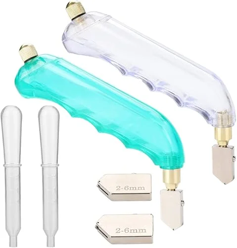 6PCS Pistol Oil Glass Cutter Oil Feed Glass Cutter with Extra 2-6mm Replaceable Head and Oil Reservoir Stained Glass Cutting Tools for Mirrors Window Glass Panes Ceramic Tile, Blue and White