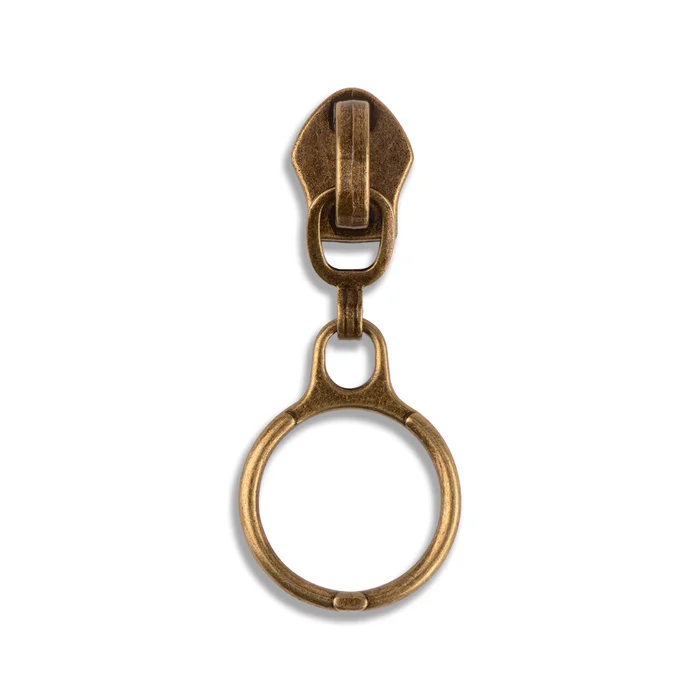 #5 Metallic Nylon Standard Ring Zipper Pulls – 10/Pack – Antique Brass