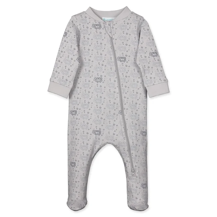 Zipper Footie – Curly Sheep on Grey 100% Pima Cotton by Feather Baby