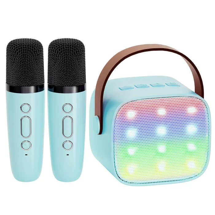 YLL Mini Karaoke Machine for Kids, Portable Bluetooth Speaker with 2 Wireless Microphones, Christmas Birthday Toys Gifts for Boys 3 4 5 6 7 8 9 10 11 12 + Year Old Party Family School(Blue)