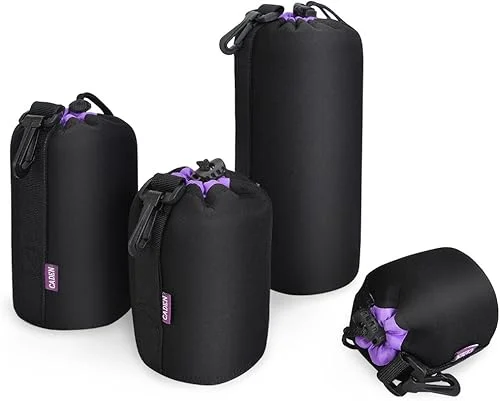 CADeN Lens Pouch Set 4 Pack Replacement Compatible for Canon, Nikon, Sony, Pentax, Olympus (Small, Medium, Large, X Large) Camera Lens Case Bag Thick Protective Neoprene Pouch Soft Plush for DSLR Lens
