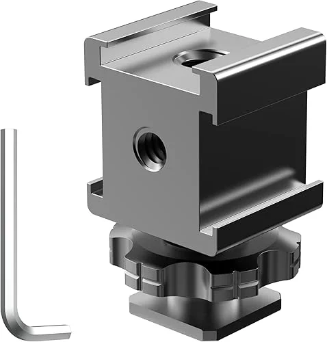 Camera 3-Side Hot Shoe Mount Adapter 360 Degree Swivel Triple Cold Shoe Bracket for Monitor Microphone LED Video Light Compatible with Sony Canon Nikon DSLR Compact Camera Vlog Film