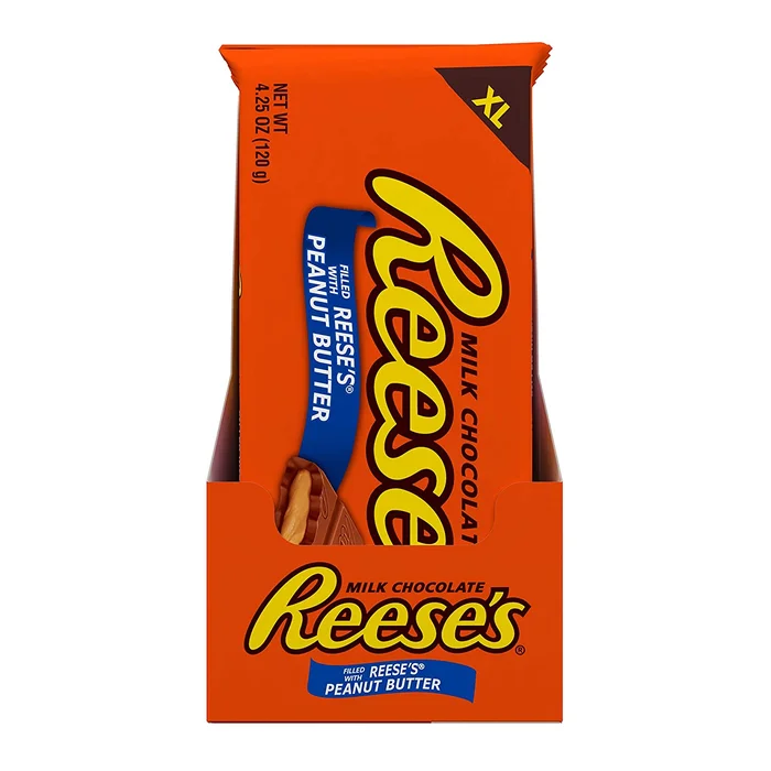 REESE’S Milk Chocolate filled with REESE’S Peanut Butter Extra Large Candy, Halloween, 4.25 oz Bars (12 Count)