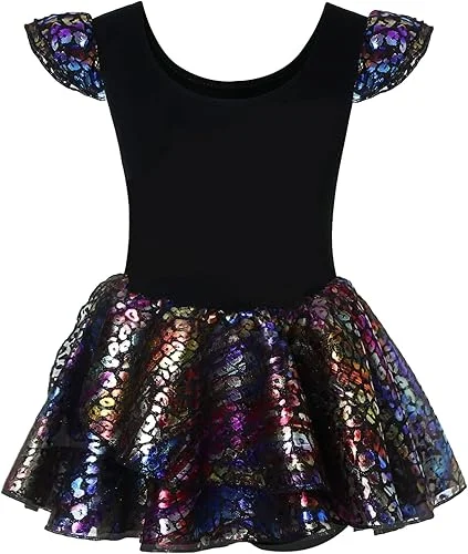 Phineein Girls Ballet Leotard with Skirt – Shiny Sparkle Tutu Dress, Ruffle Sleeve Dancewear for Kids/Toddler