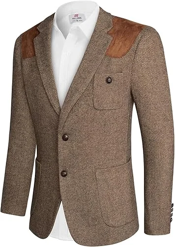 PJ PAUL JONES Men's Blazer Herringbone Tweed Sport Coats Two Button Wool Blend Formal Jacket
