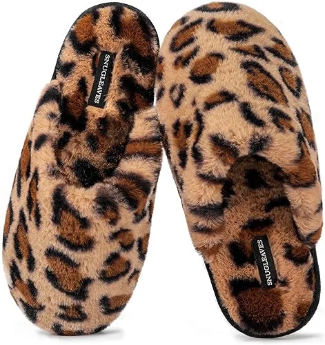 Snug Leaves Women's Fuzzy Scuff Slippers Soft Comfy Memory Foam Non-slip Indoor House Shoes