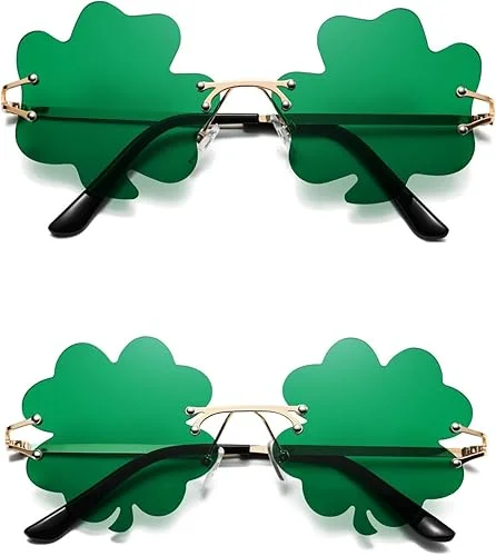 St. Patrick's Day Shamrock Sunglasses,Green Four Leaf Clover Leprechaun Costume Glasses,Irish Party Decoration Accessories