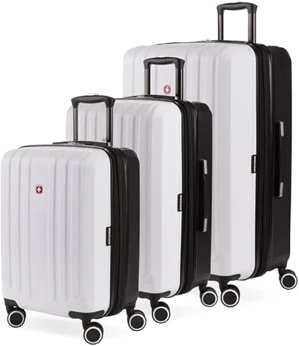 SwissGear Duet Hardside Expandable Luggage with Spinner Wheels, Light Grey/Ash Grey, Checked-Large 28-Inch