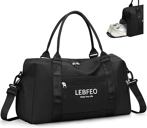 Travel Duffle Bag for Women Large Weekender Overnight Bags Gym Bag with Shoe Compartment Waterproof Hospital Bag Carry On Tote Bag for Airplanes,Black