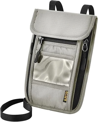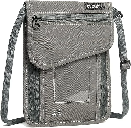 Travel Neck Pouch Hidden Passport Wallet RFID- Blocking for Women & Men ,Security Organizer Bag to Hold Cell Phone, Credit Cards, Passport,Cash and Travel Document (Grey)