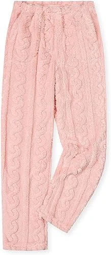 Umeyda Girl's Women's Fuzzy Pajama Pants Elastic Waist Fleece Plush Loungewear Pj Pants with Pockets, 6Years-XL