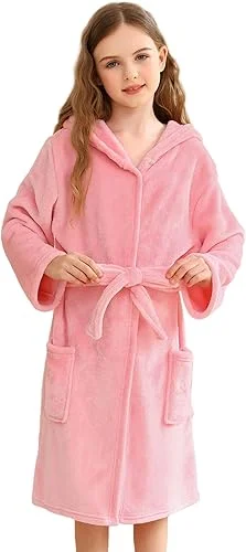V.&GRIN Girls Robe, Kids Fleece Hooded Soft Plush Fuzzy Bathrobe for 3-14 Years