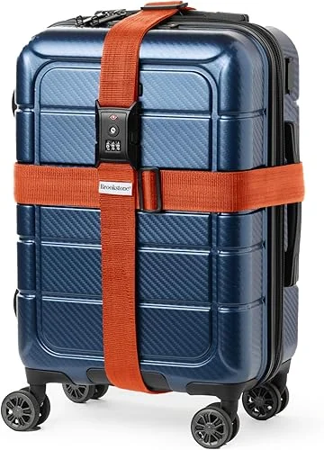 Brookstone Luggage Strap – 2-in-1 Cross Luggage Suitcase Belt with Buckle and TSA-Approved Keyless 3-Digit Combination Lock, Blue