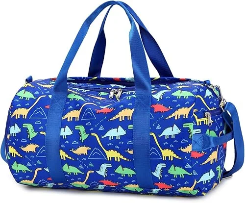 CAMTOP Kids Duffel Overnight Bag Boys Girls Toddler Weekender Carry-On Personalized Tote for Travel Gym Sport (Dinosaur-Dark Blue)