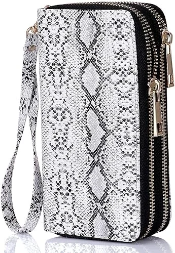Cellphone Wallet for Women Dual Zipper Long Purse with Removable Wristlet