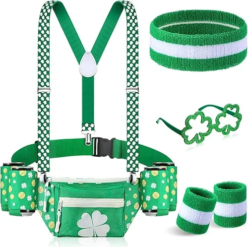 Chunful 10 Pcs St. Patrick's Day Fanny Pack Shamrocks Belt Bag Fanny Pack with Suspenders Drink Holder Headband Wristband