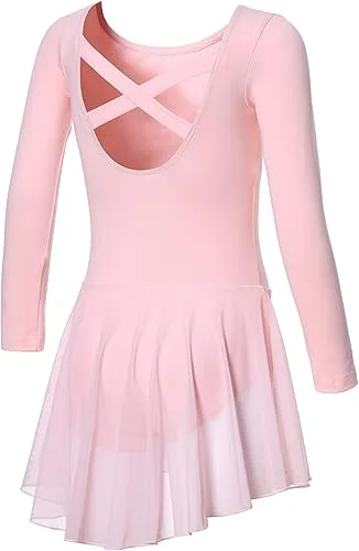 DIPUG Girls Long Sleeve Ballet Leotards Toddler Dance Leotard with Skirt
