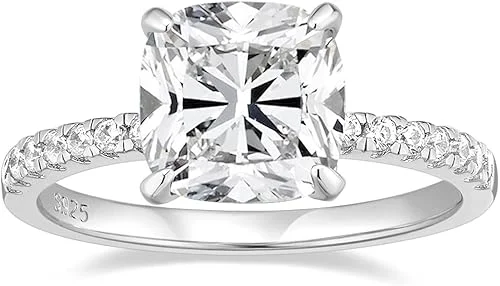 EAMTI 3.5CT 925 Sterling Silver Rings Cushion Cut Cubic Zirconia CZ Engagement Wedding Bands for Women Promise Rings for Her Size 3-11