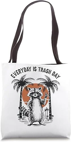 Everyday Is Trash Day Raccoon Meme | Funny Retro Sunset Desi Tote Bag