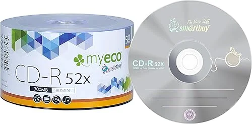 50 Pack MyEco CD-R CDR 52X 700MB 80Min Economy Branded Logo Top Write Once Blank Media Record Disc