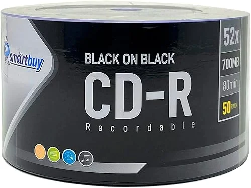 50 Pack Smartbuy Black on Black CD-R 52X 700MB 80 mins Double Side Black Vinyl Blank Recordable Disc