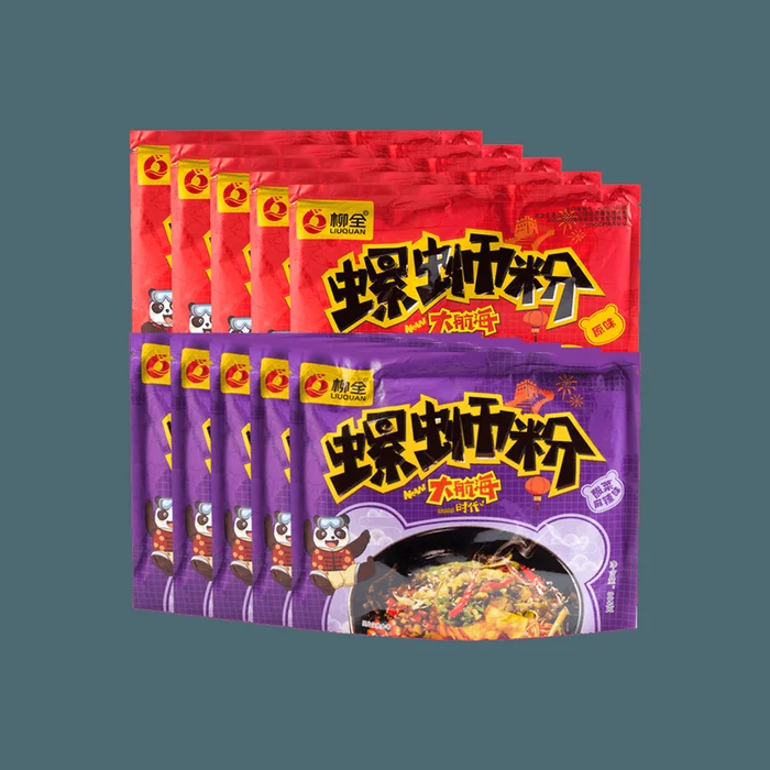 【Flavor Combo Value Pack】Original Luo Si Fen Snail Rice Noodles, 5 Packs* 11.11oz + Spicy Cabbage Luo Si Fen Snail Rice