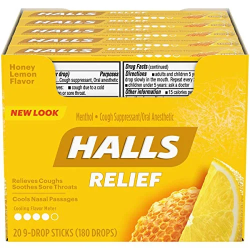 Halls Honey Lemon Cough Drops – with Menthol – 180 Drops (20 sticks of 9 drops)