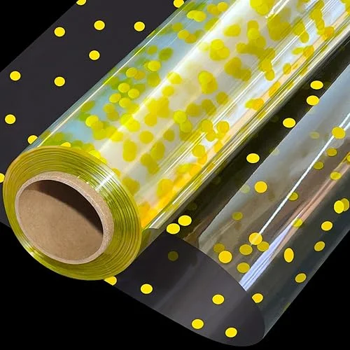 SYOGUA 100ft X 34in Extra Wide Clear Cellophane Wrap with Gold Polka Dots, Transparent Thicker Clear Cellophane Wrapping Paper, Clear Gift Wrap Cellophane Roll for Baskets, Treats, Holiday, Christmas Gifts