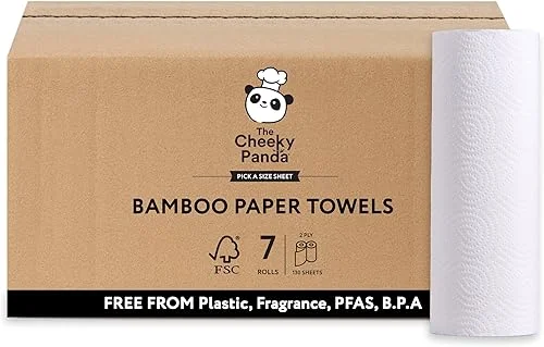 The Cheeky Panda – Bamboo Paper Towels Bulk | 7 Paper Towels Rolls | 130 Paper Towel Sheets Per Roll | 2 Ply | Strong and Sustainable