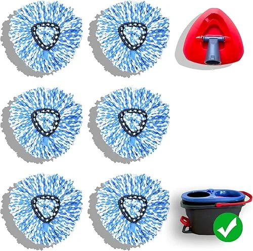 6 Pack Mop Head Replacement Compatible with O Cedar 2-Tank RinseClean Spin Mop – Mop Replace Refills for Ocedar Made of Microfiber, Deep Cleaning, Machine Washable and Easy to Replace, Blue