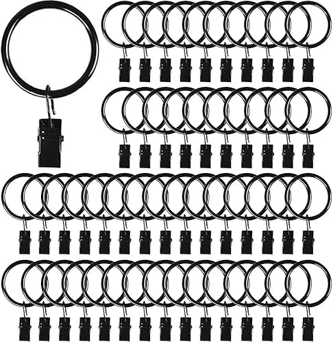 110PCS Curtain Rings with Clips, Premium Drapery Clips with Rings, Metal Hangers Drapes Rings Rustproof, Fits Diameter 5/8 in Curtain Rod Black…