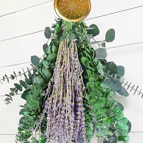 115 PCS Large Dried Preserved Eucalyptus Stems & Lavender Flowers Bundle for Shower, 17'' Real Fresh Hanging Silver Dollar Leaves, Aromatic Self-Care Shower Plants, Natural Fragrance, Home Decor