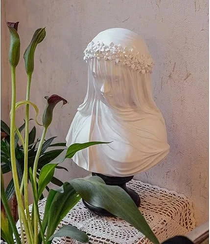 White Resin Art Deco Sculpture, Veiled Maiden Bust, 11x6x6 inches, Home Decor, Gothic Style