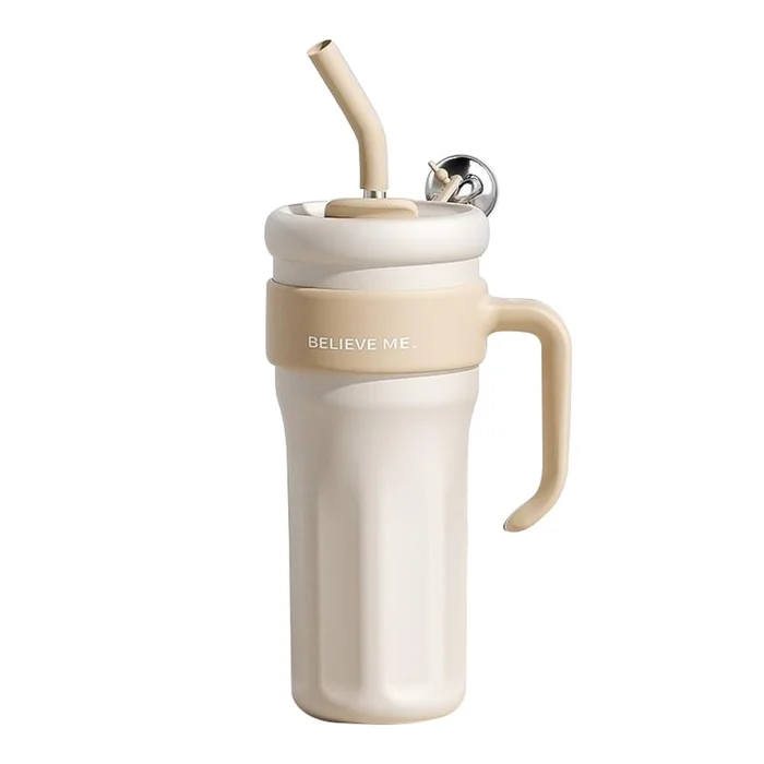 【North America】Believe Me Extra Large Capacity and Good Looking Thermos Cup-Big Mac size Macaron Khaki 1250ML